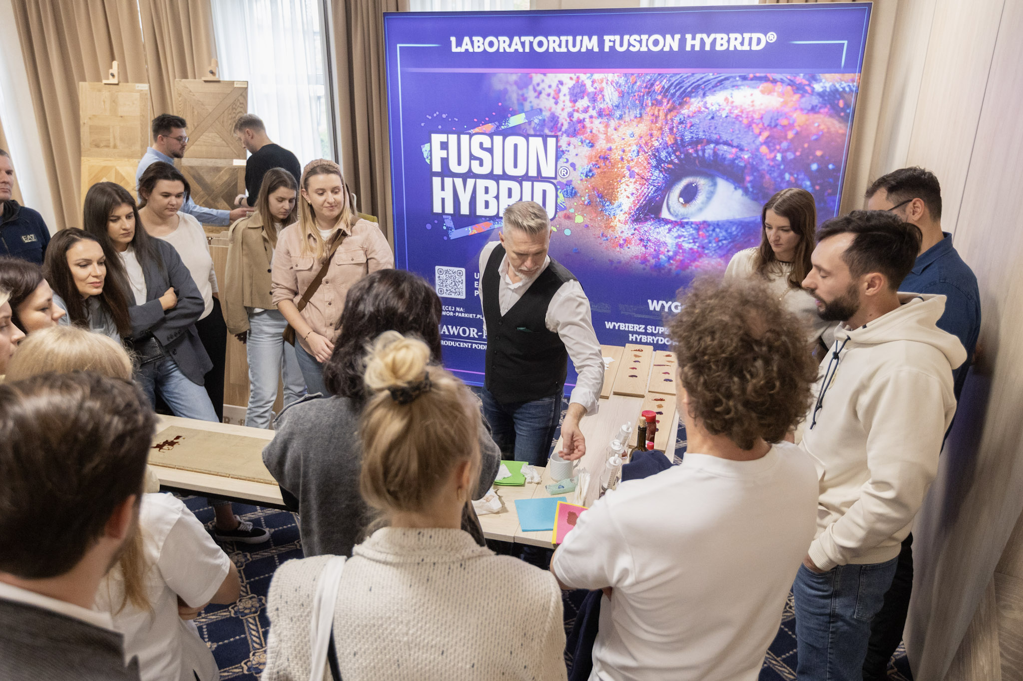 The second day of the Jawor-Parkiet Designers Weekend began with a presentation of Jawor-Parkiet and the partners of the event. During the industry Business Mixer, architects had the opportunity to get acquainted with the latest product offer, visiting the manufacturers' stands. Jawor-Parkiet invited guests to the Fusion Hybrid Laboratory, where we presented the resistance of our wooden floors with a hybrid coating to scratches and stains from juices, wine or tomato sauce. Participants were able to see with their own eyes how effectively the Fusion Hybrid coating protects wood, ensuring its durability and aesthetic appearance for years.